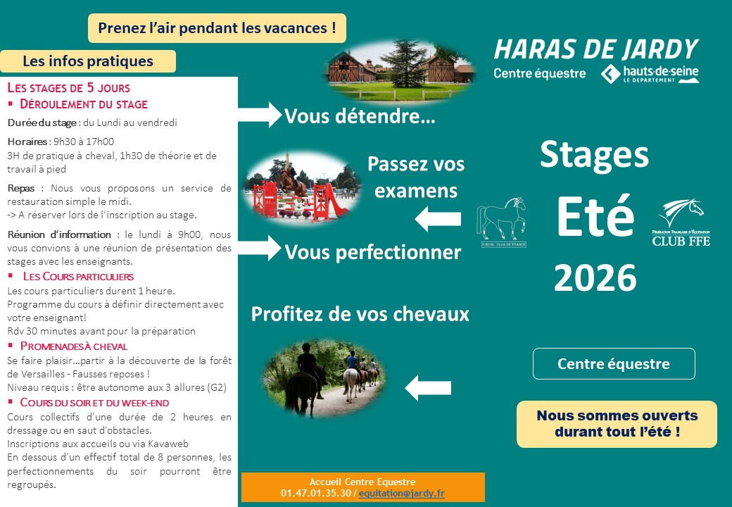 Les stages durent 5 jours du lundi au vendredi de 9h30 à 17h00